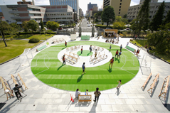 ▲WORLD CUP(みちのおくの芸術祭 山形ビエンナーレ2014)。ドーナツ型のサッカーコートによる実験的なインスタレーション。Ph:志鎌康平。(クリックで拡大)