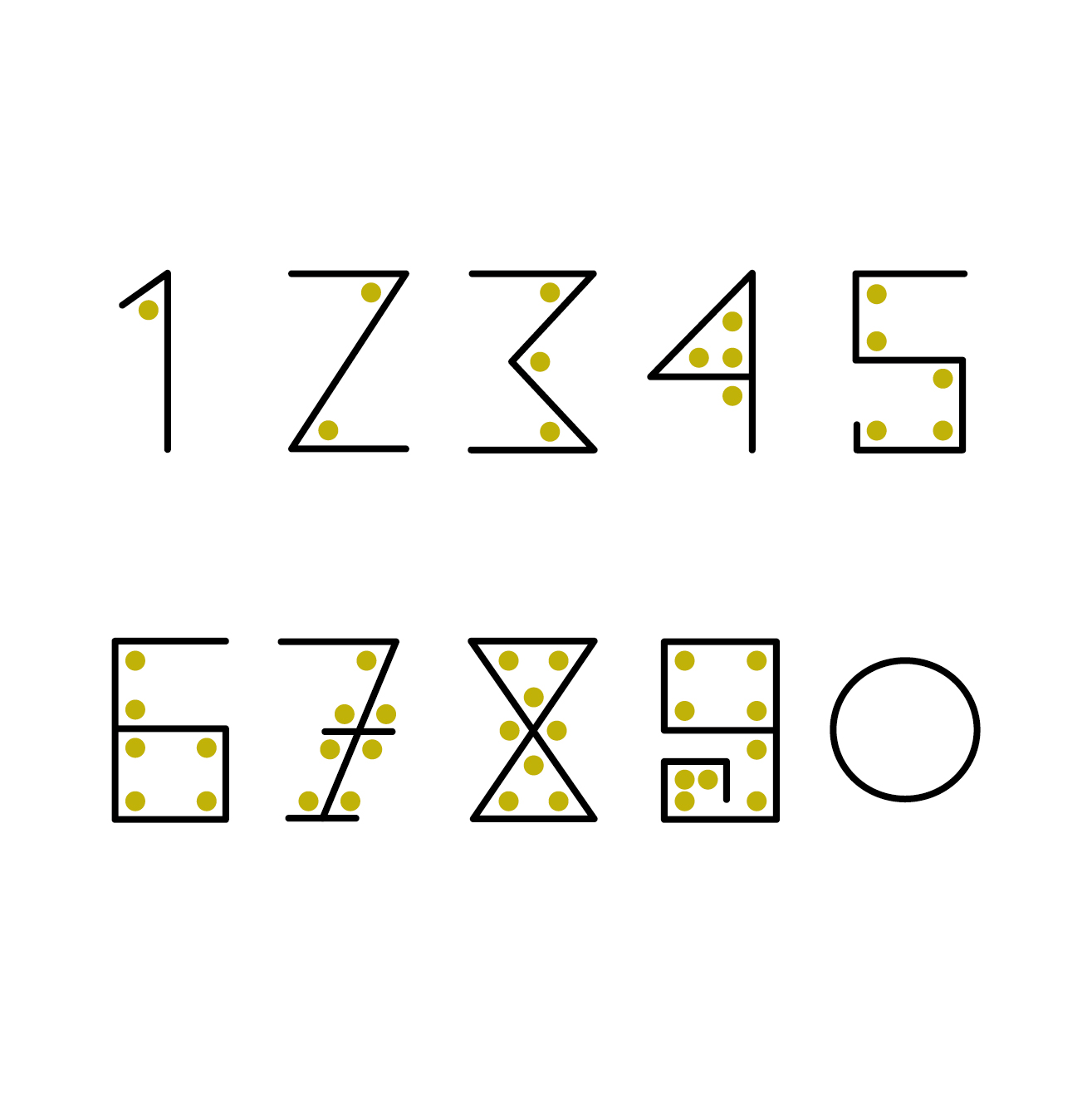 ▲数字のかたちの成り立ち。角の数がその数字を表している。(クリックで拡大)
