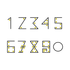 「0.1.2.3…」といったアラビア数字のかたちを考えたのは9世紀に活躍したアラビアの数学者だそうです。右の図をご覧ください。現在は省略しているところもありますが、もともとは図のように「角の数」がその数字を表しているそうです。「1」がさっぱりしている理由に納得。