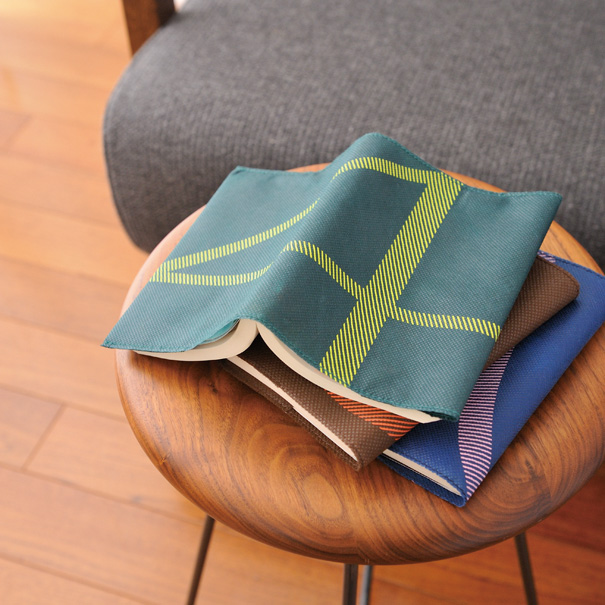 ▲「ナンバーブックカバー」 本を広げると数字が見えるが、閉じていると抽象的な曲線と直線の模様に見える。(クリックで拡大)