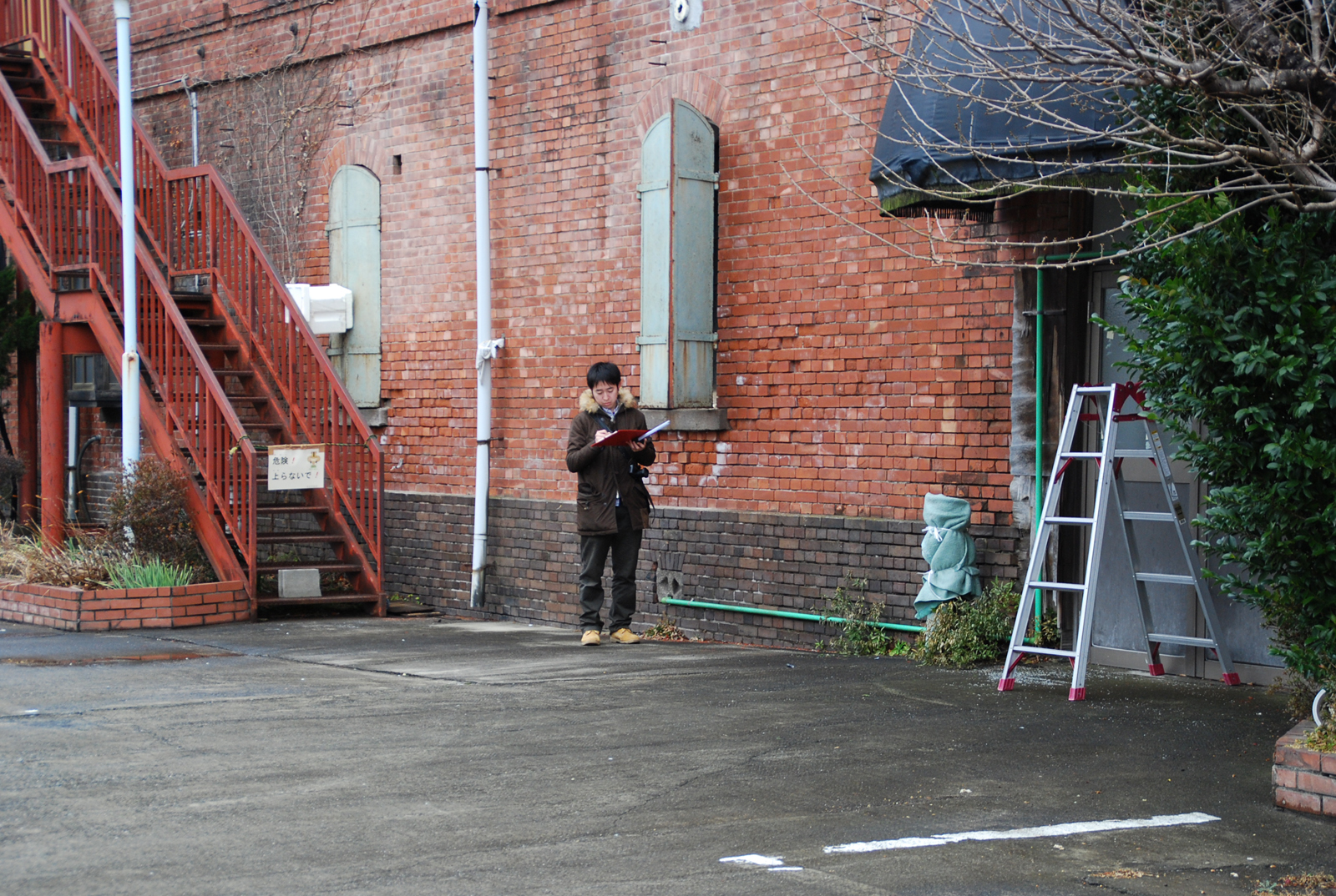 ▲旧本庄商業銀行煉瓦倉庫を実測する。(クリックで拡大)