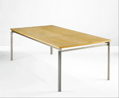 神が細部に宿った家具と言われて、一番に思い浮かぶのは、ポール・ケアホルムのPK51テーブルだ。コの字形に溶接したフラットバーを長辺と短辺で直交させて組み合わせただけの構造はミニマリズムの極致である。にもかかわらず、一目でケアホルムのものだと分かるフォルム。構造が形に現れるモノとしての存在感。必要最低限のパーツしかないこのテーブルには神が宿っているとしか考えられない。「機能から生まれる形」のゴールとも言えるこのようなデザインにいつかは辿り着きたい。