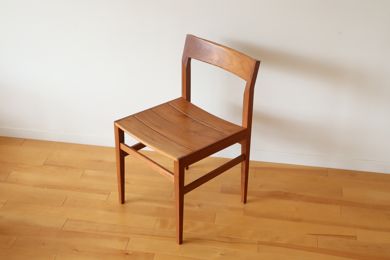 まっすぐの4本脚に、5枚のまっすぐの板を釘で打ち付けて作った座面、後ろ脚に挟みこまれた、ただの板の背もたれ。けっして座り心地はよくないが、絵に描いたような「椅子」の姿に心打たれたのだと思う。体も大きくなり、椅子としてはほとんど使わなかったが、部屋の中で存在感を放っていた。このなんてことのない椅子を、なぜ当時の私がそんなにも好きだったのか、そして今でも心に残っているのかを考えた。