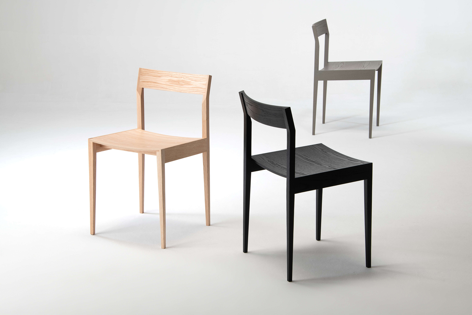 まず、座板を成形合板にすることで、無垢材故に構造上必要であったスリットをなくした。次に脚を細くし、貫を省き、着座時の揺れをフレームのしなりで逃す構造へと改良することで、構造が形に現れた「flat chair」へと進化した。現時点で自分たちが考えうる「機能から生まれる形」の最適解の椅子になったのではないかと思う。