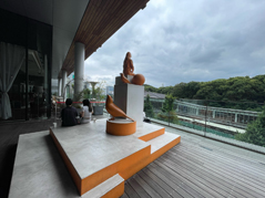 先日、原宿の駅前にあるWITH HARAJYUKUに立ち寄った。待ち合わせをしたこの商業複合ビル、4階からは集合住宅で明治神宮の100年の森を一望できるという。原宿駅を降りて目指す建物を確認し目線を上げると3階あたりにオレンジ色の像が見えた。