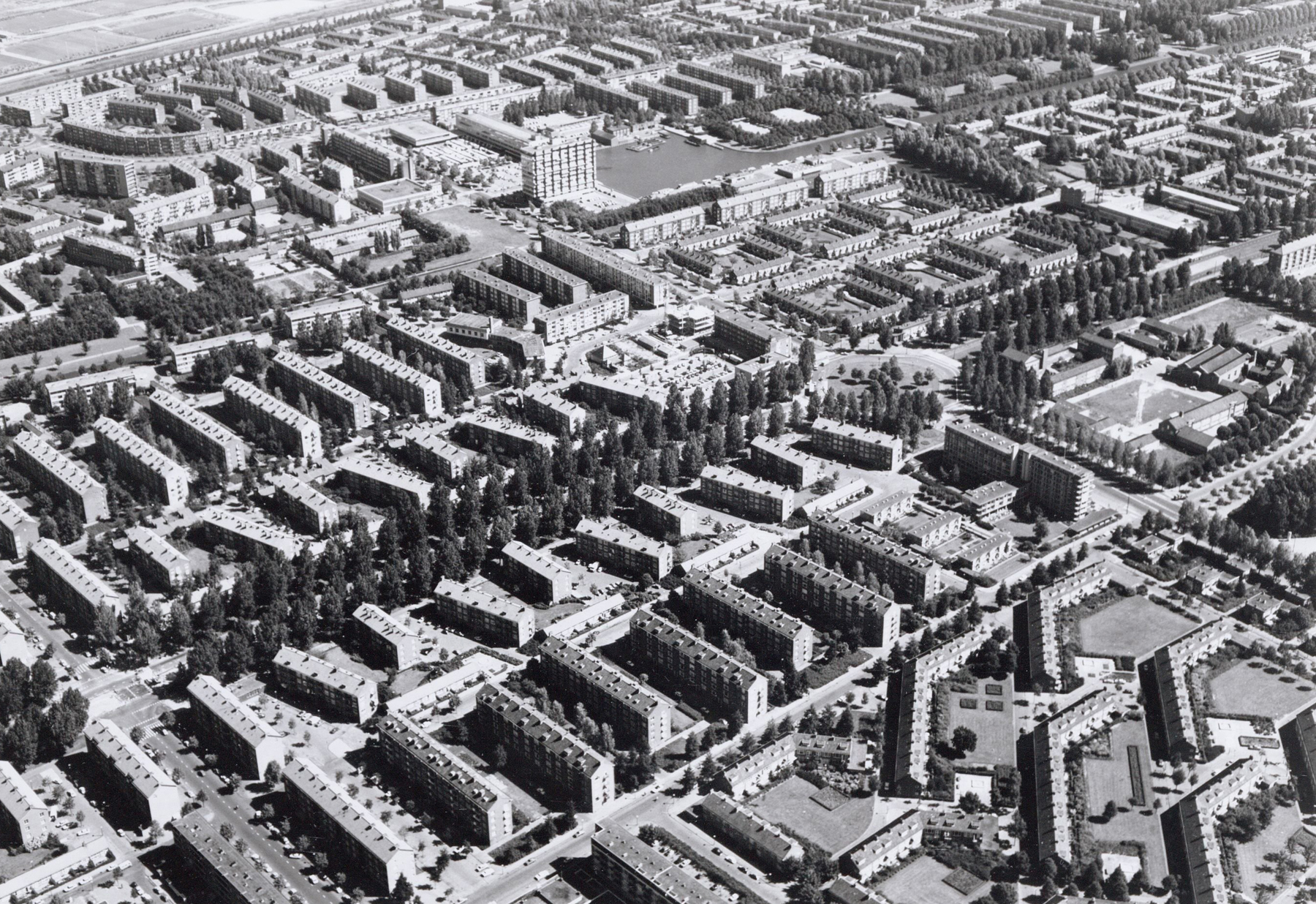 アムステルダムのニューウエストと呼ばれる街区は、戦後の都市部の人口増加に伴い50年から60年代にかけて、1935年に発表されていたアムステルダム総合都市拡張計画をベースに作られた。中心部とほぼ同じ面積の街区をスキポール空港に近い西側に設け、住と職の充実を図った。その形態と配置は日本の戦後住宅と類似し、緑豊かな田園都市が手本となっている。