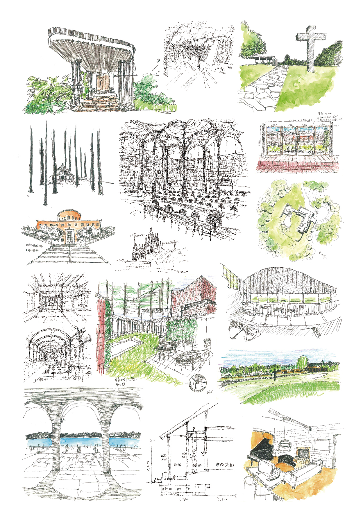 私自身も、近代建築の源流であるギリシャ、ローマはもちろんロマネスク、ゴシックなどの成り立ちや空間性には強い興味と学びを得てきた。日本の伝統建築だって、現代の建築よりも岡山の閑谷学校(写真1)や奈良の慈光院の書院(写真2)の方が魅力的だと思っている。旅に出てスケッチ(写真3)したり実測をしたりするのは、身体にマーキングするようなものだが、大袈裟に言えば、こういうものの空間性を身体に宿らせたいと思っている。