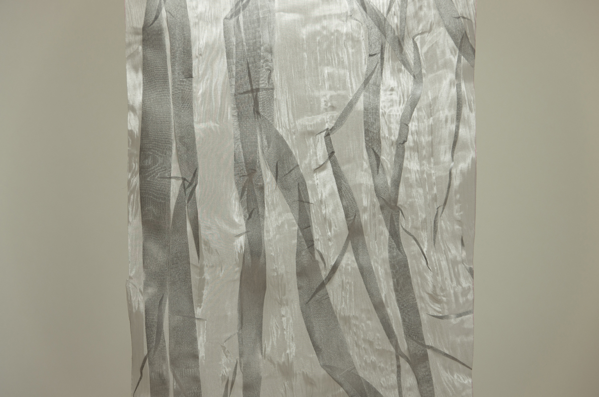 ▲特殊な技法によって極細のステンレスで編んだメッシュ。素材の特徴から光の当たり方によって繊細で独特な表情を醸し出す。インテリア商材としてさまざまな模様やカラーから選択可能。(クリックで拡大)