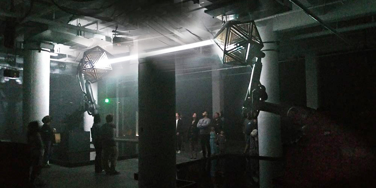 さて、自分は現在ロサンゼルスのVT Pro Designというクリエイティブスタジオに勤務しています。クライアントはGoogle、Netflix、WarnerBrosなどなど。ハリウッドで映画のプロモーションイベントを行ったり、SXSWで体験ブースを作ったり、Coachellaなどの音楽フェスティバルで特設ブースを作ったりしています。自社企画のプロジェクトとしては、ロボットアームにライトを取り付けたアートインスタレーション「Telestron」が代表的な作品です。