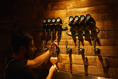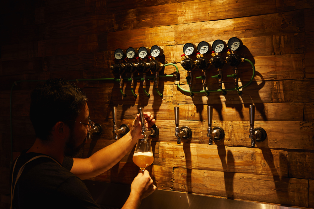 ▲Craft Beer bar Mariciero(2017年)。酒樽の壁からビールを注ぐ。(クリックで拡大)