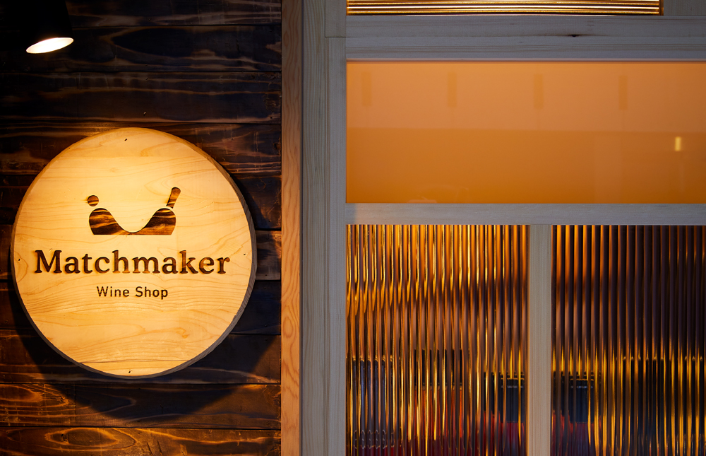 ▲Wine Shop Matchmaker(2018年)。酒樽を活用した店舗サインと外壁。(クリックで拡大)