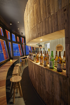 ▲SAKE TARU LOUNGE。六甲山の間伐を活用したカウンター。(クリックで拡大)