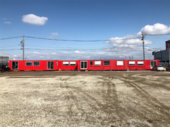 コンテナ同士はサッシュによってつながり、1台で用途、規模が完結することなくリニアな広がりが生まれた。新潟で製作されたコンテナオフィスはトラックによって運ばれていき、今後も増設予定である。