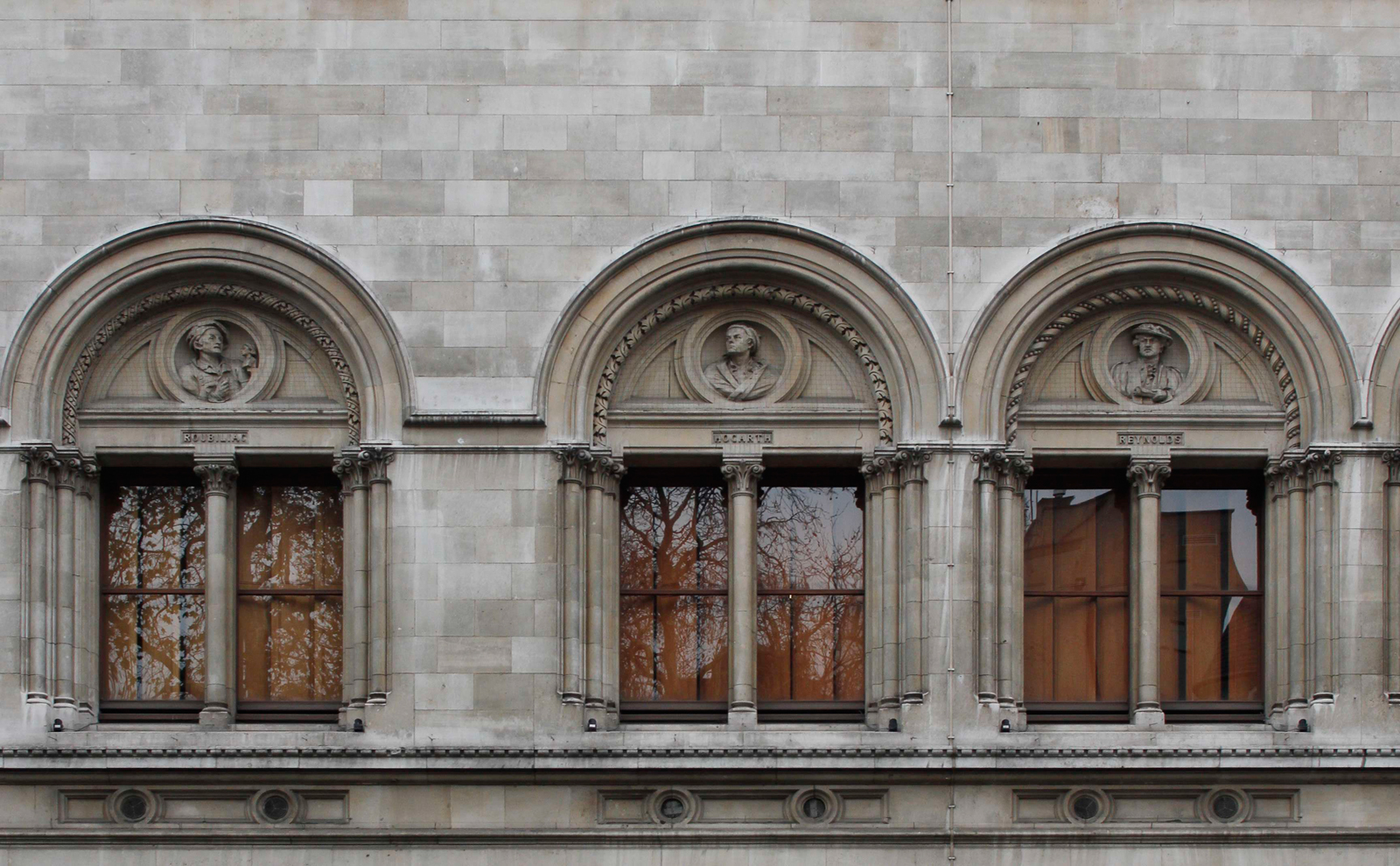 1896年開館のNational Portrait Galleryはロンドン中心部に位置する国立美術館であり、世界最大級の肖像画コレクションを有している。建築家Ewan Christian によるフィレンツェルネッサンス様式の邸宅をモチーフにしたメインファサードはポートランドストーンに刻まれたレリーフをまとい、力強い存在感と華麗な表情を合わせ持っている。