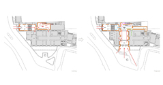 ▲地上階の動線と新アプローチ。既存と提案の比較。(クリックで拡大)