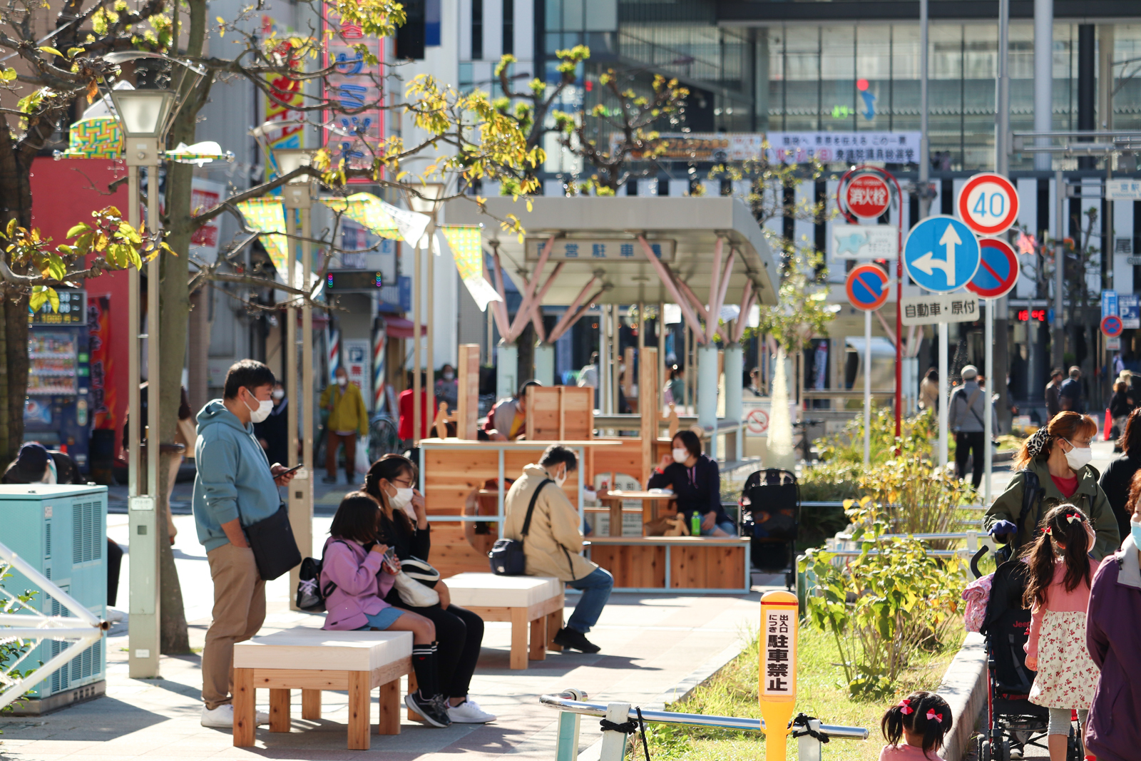 2020年秋から愛知県一宮市で取り組んでいる《一宮市ウォーカブル空間デザインプロジェクト》という都市計画プロジェクトの一貫として、2021年に「ストリートチャレンジ2021」と称した社会実験(※2)を行いました。