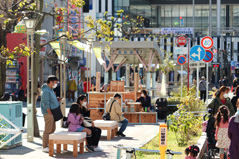 わたしたちが実施したことは大きく分けて2つあります。1つは、週末の2日間、駅前通りを通行止めにして、体験型、飲食、物販といったイベントを行ったこと(写真3)。