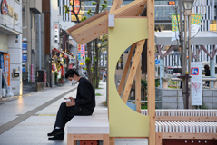 もう1つは1ヶ月の間、「路上建築群」と呼んでいる、大小さまざまな3種類の構造物を駅前通りに点在させたことです(写真4~6)。