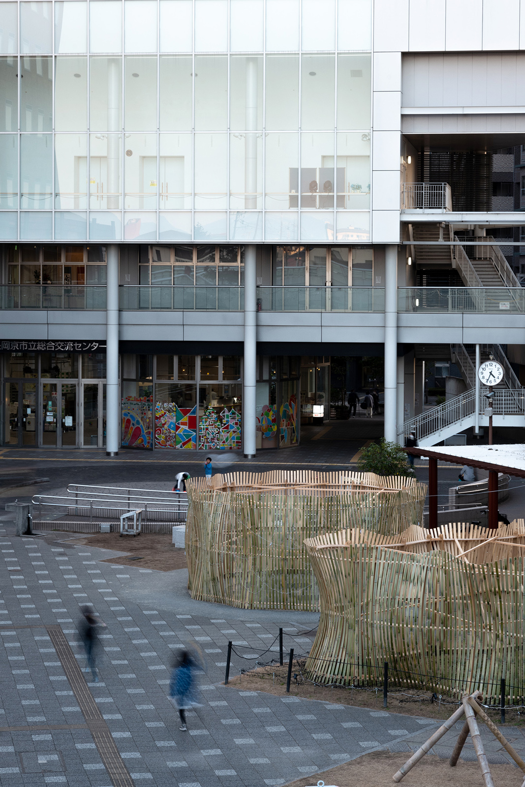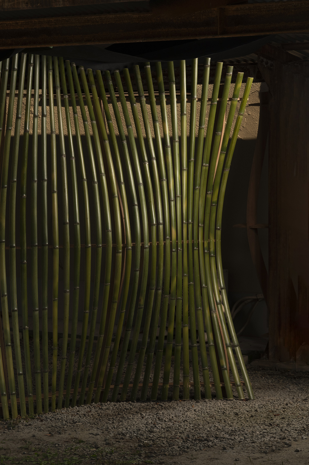 代表的なものとして、京都で開催されたイルミネーションイベントにて竹製のパビリオン「wave」を製作した。「竹が躍動する曲線の優美さ」をテーマに、湾曲するフレーム材へ等間隔に竹を配置し、躍動的な演出を行った。陽の光により黄金色に反射する美しい竹肌や、夜には格子から漏れる色とりどり街の明かりが楽しめるオブジェとなった。