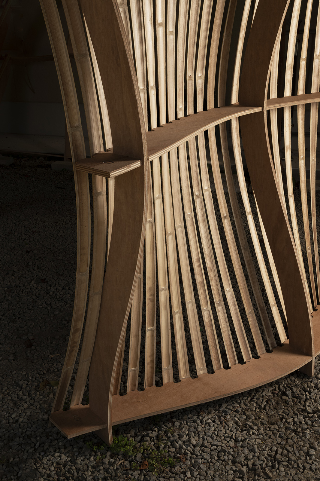 独立後、少し特殊でもあった竹素材を扱う依頼をもらうようになった。竹は肉厚10ミリ程の筒形状で、繊維が縦方向に真っ直ぐ伸びており曲げに強い素材である。限られた肉厚の中で形状を考えることはとても楽しいものだった。