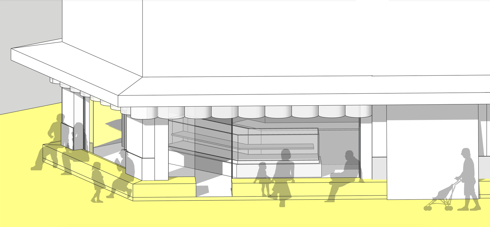 ▲fig.6:田辺の和菓子屋/外周にまわる長いベンチ。(クリックで拡大)