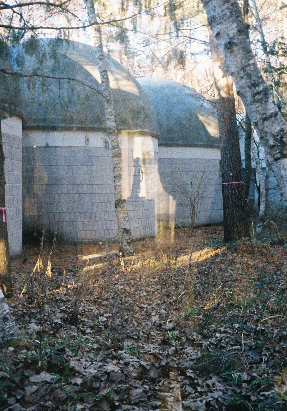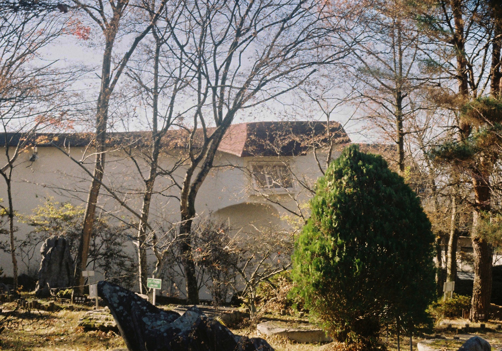 長野県原村にある八ヶ岳美術館の周辺は、白樺の林に囲まれた広大な敷地内に清水多嘉示の屋外彫刻が配置されている。 美術館は半円の壁に半球とヴォールトの屋根がグリッド状に反復して構成されており、ある規則に則って設けられた開口部は、外部の環境や屋外彫刻が内部にいながらもちらちらと視界に入るスリットの役割を担っている。 ごく当たり前のことだが、建築を経験するときは、外観を見た上で内部に入る。周辺環境と建物の建ち方によってはおおよその外観を観察して、全体の構成を把握した上で内部に入るということもあるだろう。 しかし、八ヶ岳美術館では、その順番が反転したり逆流する感覚に陥るのである。内部にいながらもさっきまで見ていた外部からの視点を思い浮かべてしまう。さっきまで見ていた自分の視点を思い出すこと。それは清水多嘉示の彫刻が視覚と記憶によって記号化され、記号化された彫刻が違う視点から見た時に、過去の視点をほのめかすというような感じである。