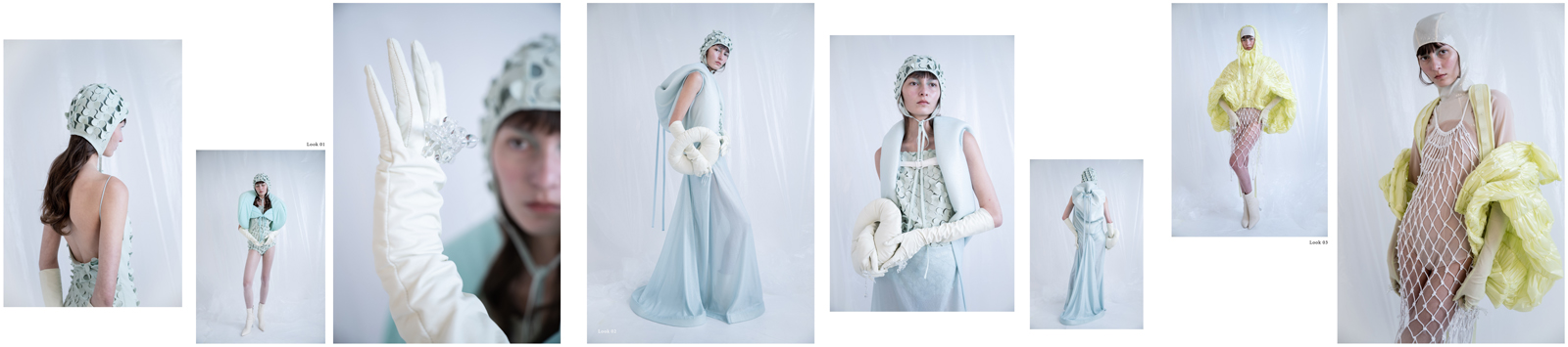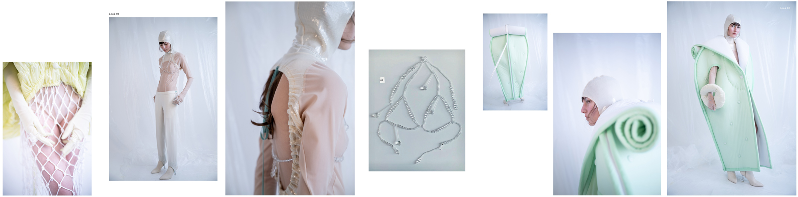 それらの本来の目的に固執せず、ビジュアル的なデザインとして取り入れるという一種の機能性の無駄遣い的な意味でも非日常を表現したかった作品で、ノマディズム(非定住的、非定型的などの意)の精神に興味を持つきっかけの作品です。ムードは水中や水泳が大きなキーワードで、透明感や色彩では「ウミウシ」という数多くの種が存在し海を漂う小さな生き物たちからインスピレーションをもらいました。