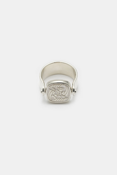 h’eresの23AWとしてリリースした、REVERSIBLE RINGは私の気に入っているデザインです。リングのフロント部分が回転する古いタイプのシグネットリングを資料に、プレートに動物のアイコン、その裏側にパターンを刻印したギミックリングです。