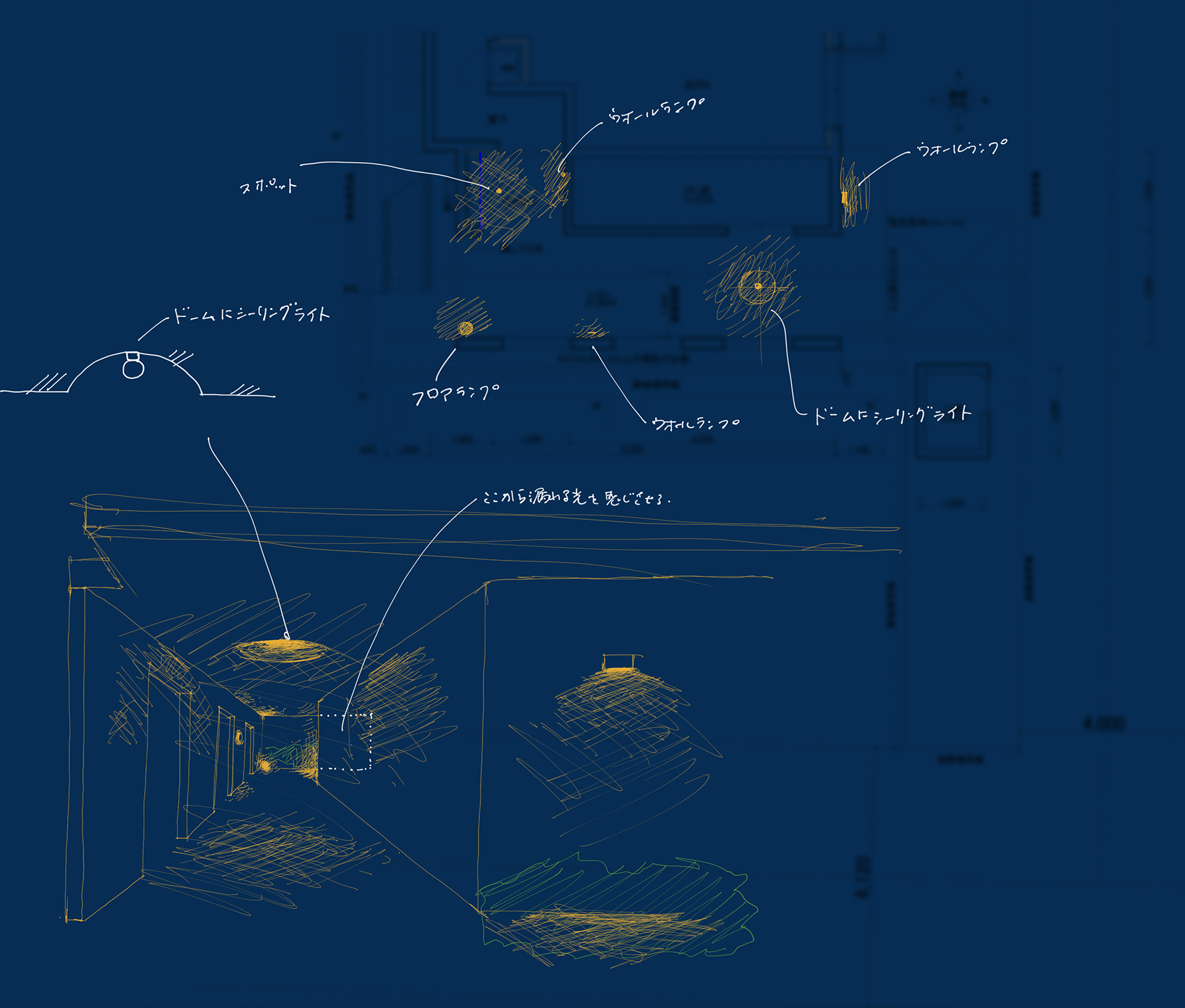 ▲マンションエントランスの提案スケッチ。非構築的な人に寄り添う光環境を目指した。(クリックで拡大)