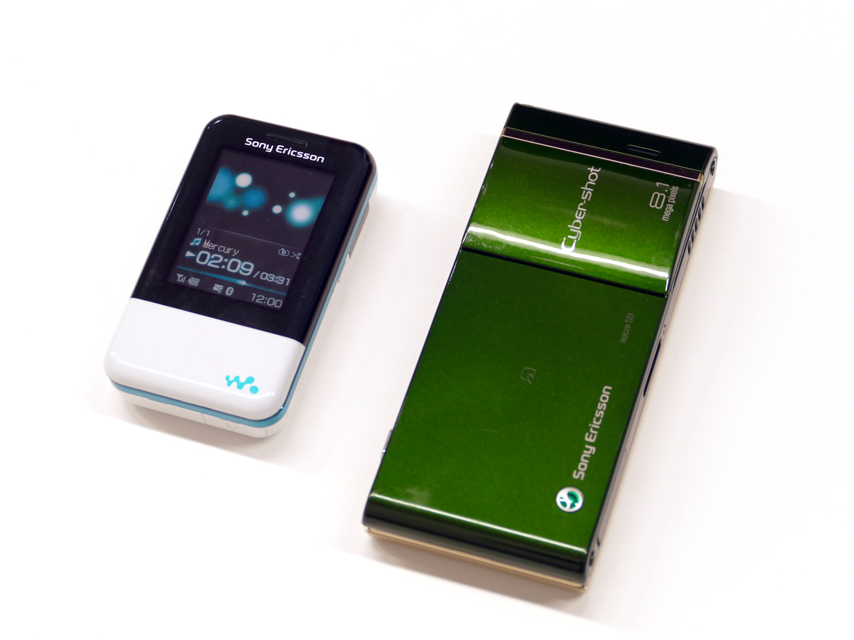 2008年の「Xmini」(左)とCyber-shot携帯の「S001」