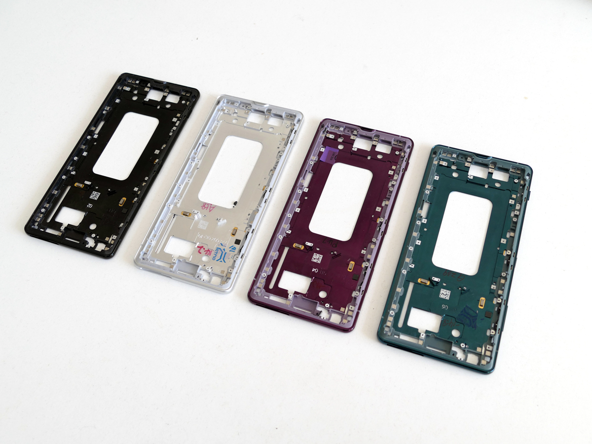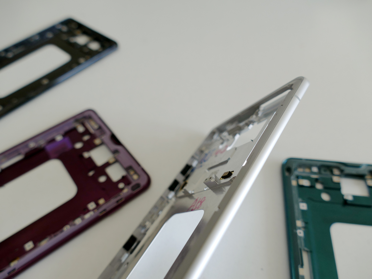 この3ミリのフレームを軸に基板たディスプレイ、バッテリーが実装される |
