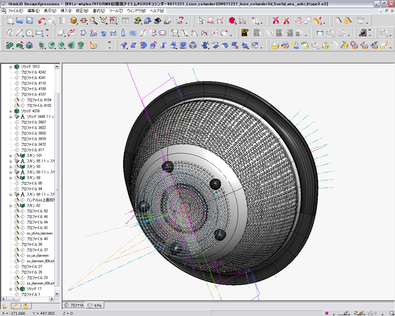 「私自身スケッチも描きますし、CADを使う場合もあります。やはり自分でやっていないと(笑)。フォルムでは3D CADはThinkDesignとSolidWorksの2つを用いています。ThinkDesignは自由な曲面の扱いができるという点と、サーフェスとソリッドの両方を併用できる点を評価しています。