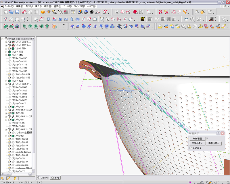 断面表示を画像として用い製造側とのWeb会議に使用。誤解が生じにくく、海外との打ち合わせにも有効(クリックで拡大)