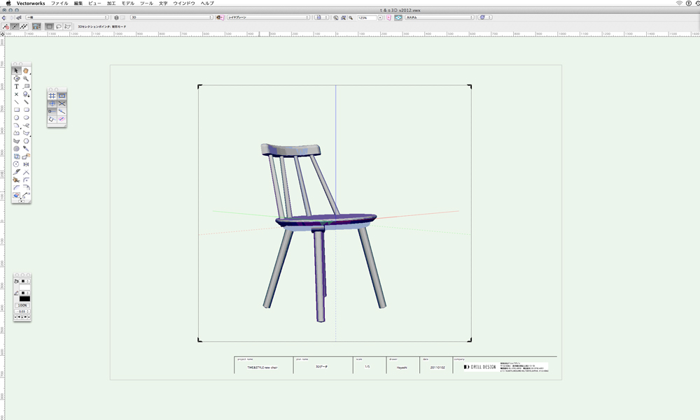 林:製造用の図面は本当に最後の段階ですね。模型用の図面はIllustratorでササッと描く場合もありますが、家具デザインの場合は、ほとんどVectorworksですね。シンプルな形だったらVectorworksで3Dまで起こします。