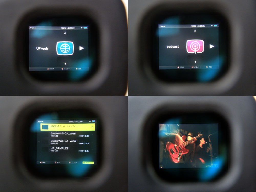 さて、MEDIA PORT UPは、8GBのメモリとモーションセンサー、AV入力端子を装備した上位機種の「UP300x」が69,800円(税込み)、4GBの「UP300」が59,800円(同)で、2008年12月中旬から出荷される(予約は10月15日からUP STOREサイトで始まっている)。