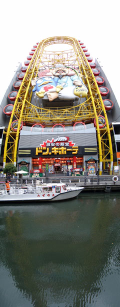 同一地点で縦方向に撮影したパノラマ写真。一般的な写真でも構図によって印象が変わるが、超広角のパノラマ写真では、まったく別物といえるほど、風景が変化する。ちなみに被写体は、道頓堀のドン・キホーテの名物である扁平型の大観覧車だ(クリックで拡大)