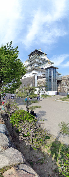 今回はパノラマ機能を主体に説明を加えているが、もちろん光学20倍ズーム機としての性能も優秀だ。例えば、この縦パノラマ写真を撮った位置から、最望遠端で天守閣を撮ってみると…(クリックで拡大)