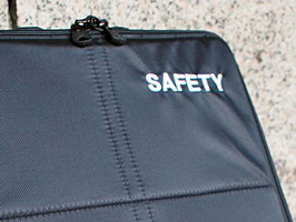 裏返しても平面的で、下部側面にチケットなどをすぐに取り出せるポケットが付く。SAFETYの文字は、開口部をショルダーハーネス側に設けたため不用意に後ろから開けられる心配がないという、スリの多いヨーロッパならではの配慮を示している