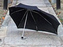 センズ・アンブレラは、オリジナルと呼ばれる標準タイプ(7,140円)で風速100km/h、ミニと呼ばれる折りたたみタイプ(5,250円。写真)で同60km/hの強風に耐えるというオランダ生まれの傘だ