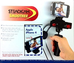 その基本原理をハンディサイズに凝縮し、しかもiPhoneのような新世代の情報機器に対応させた製品が、今回採り上げるSteadicam SMOOTHEE(スムージー。24,900 円。http://www.ginichi.com/products/detail.php?product_id=7695)である。