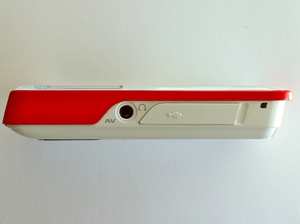 白いボディを赤いバンド状のパーツでガードしたようなデザインに機能的な意味はないが、なかなか斬新であり、一般的なコンパクトデジタルカメラの中でも埋没しないことは確かだ。