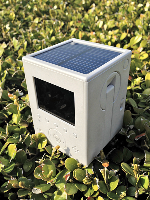 しかし、じっくり見てみれば、箱形の二眼レフカメラのモチーフを巧みに引用しながらも、ソーラーパネルの面積や陽当たりを考えてトップパネルと一体化させたり、手回し発電機を回す際のグリップ感を考慮するなど、この製品に与えられた機能性に基づく理に叶ったデザインがなされていることが理解できる。