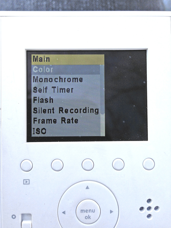 画面内のインターフェイスは単純な階層式だが、シンプルで分かりやすい。また、アートフィルター系の撮影モードを含め、ほとんどの機能はメニューに表示した状態でディスプレイ下のショートカットボタン(3個)を押すと登録でき、ワンタッチで呼び出し可能となる。このカメラの場合には、メニュー表示が粗めのドットフォントでも気にならない。(クリックで拡大)