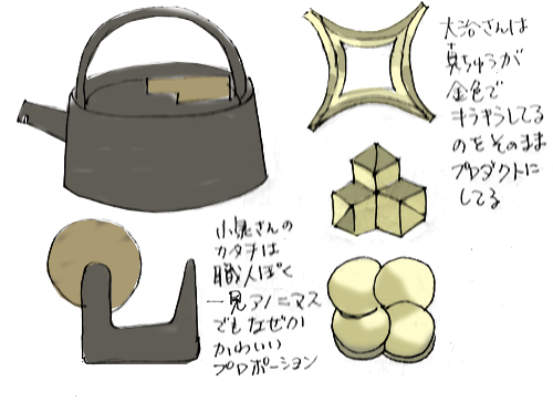 MOMAT館長曰く「行動するデザイナー」、普段はデパートやデザインショップなどで販売されているが、"ててて見本市"など、自分たちでもイベント立ち上げて販売したり。「センヌキデザインプロジェクト」のように複数のデザイナーでそれぞれが作り、イベントをからめた新しい動きをやってみたり。そして小泉誠さん、城谷耕生さん、NUNOの須藤玲子さん。