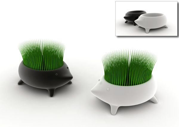 鷲尾和哉/京都市左京区 使用ツール:Rhinoceros、CINEMA 4D ○ハリネズミの形をしたプランター「Harinezumi」。植物を育てると、ハリネズミも育ち、ペットを育てるような感覚になる。プランターと植物の関係を密接にすることで、より両方に愛着を持たせた。空のプランターだけ見ると、植物を入れたくなるような気持にさせる愛らしさがある。よりモノを大切にさせるデザインである。 |