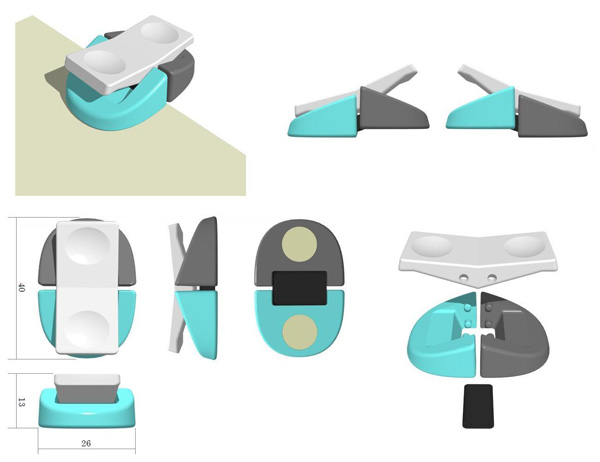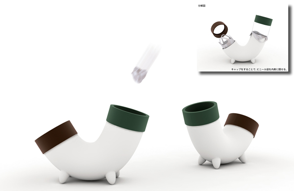 鷲尾和哉/京都市左京区 使用ツール:Rhinoceros、CINEMA 4D ○動物のような形をしたゴミ箱「Crebox」。2つの口が胴体で1つにつながるウイット感がある。「ゴミを投げてください」といった愛らしい形で、インテリアにも合うゴミ箱である。またゴミの入れ口が2つあるので、片方は燃えるゴミ、もう片方は空き缶などと分別できる。 |