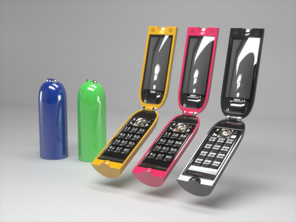 田崎剛宏/茨城県守谷市 使用ツール:SOFTIMAGE|XSI、Maxwell Render、AMD Athlon 64 X2 Dual、3GHzメモリ、NVIDIA GeForce 7800 GT ○携帯電話は基本的に立方体ですが、本当に他の形では駄目なのでしょうか?という疑問から思いついた形です。 |