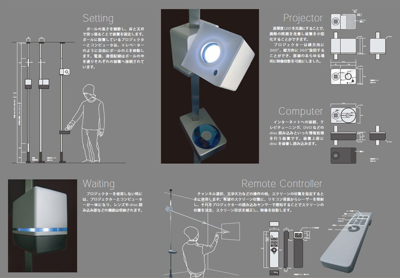 松浦健二/広島県広島市 使用ツール:Shade、Illustrator http://www.kenjimatsuura.com ○スピーカー中心のオーディオを考えたら、自然にこの形が生まれました。飾りのない(Sanserif)シンプルなコンパクトオーディオ。CD、チューナー、シングルスピーカーの一体型ユニットと、独立した2つのサブスピーカーで構成。メインスピーカーは、フルレンジ型を使用し上下の角度調節が可能、後部にバスレフ用の穴があります。サブスピーカーは、縦、横、吊り使いが可能。カラーは、ブラックとシルバー。 詳細 |