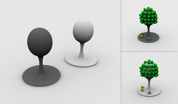 谷 幸祐/兵庫県神戸市 使用ツール:CINEMA 4D、Photoshop、Illustrator ○可愛らしさと、持ち運びのできるライトをコンセプトに考えました。フォルムは、名前の通りベルをモチーフに可愛らしさを探求しました。高原の部分は、3つの大きさの球体のライトを採用し、家庭の電球を使えるようにしました。 |