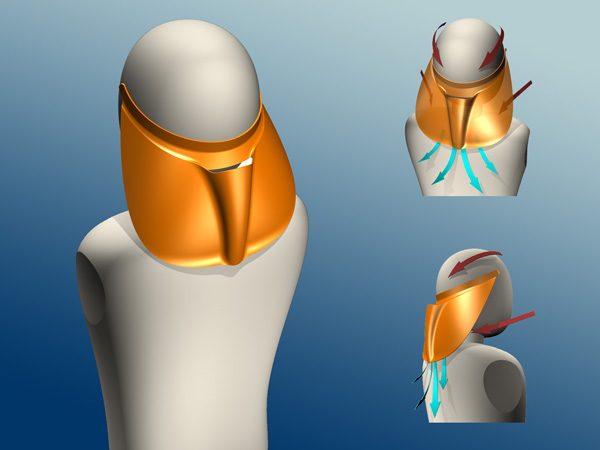 斉藤隆司/愛知県豊橋市 使用ツール:Rhinoceros ○マラソン、ジョギング、ウォーキングなどの運動中、後頭部に空気を効率良く流し込み、冷却効果を得ます。 体温が上がり、首・背中に汗をかき始めると冷却効果が倍増し、快適な運動ができます。 |